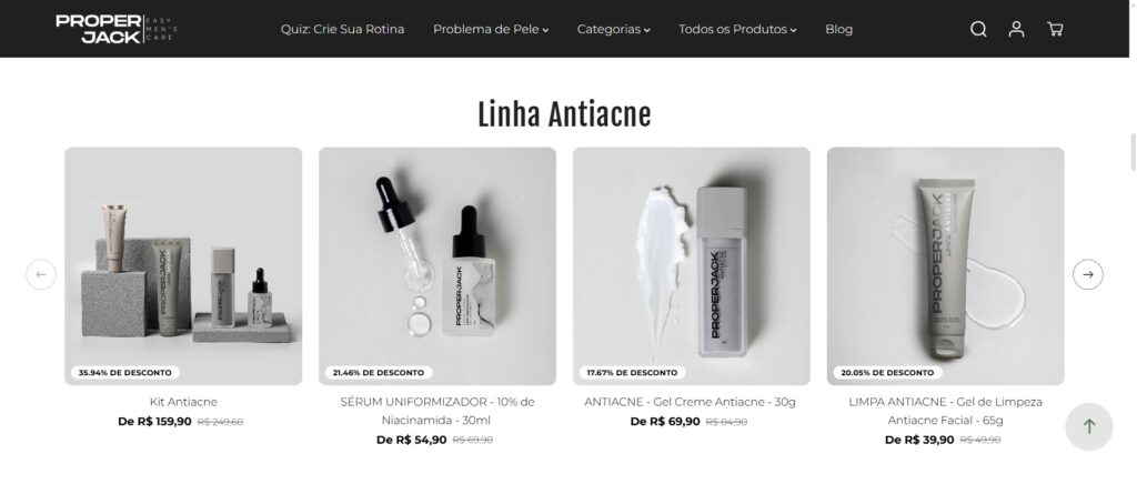 Sim. A Proper Jack desenvolveu linhas específicas para o controle da oleosidade e prevenção da acne. Um dos destaques é o Kit Antioleosidade PRO, que reúne limpeza profunda, hidratação leve e ativos que equilibram a produção de sebo, deixando a pele com toque seco e sensação refrescante. Leia mais.