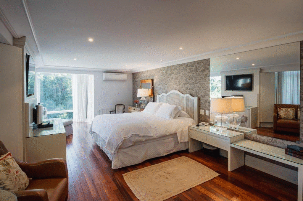 Em Gramado, os hotéis de luxo se destacam por quartos amplos e bem decorados, muitos com lareira, banheira de hidromassagem, camas king-size e vista para áreas verdes ou pontos turísticos da cidade. Além disso, é comum encontrar amenities de alto padrão, enxovais sofisticados e tecnologia moderna, garantindo máximo conforto durante toda a hospedagem.