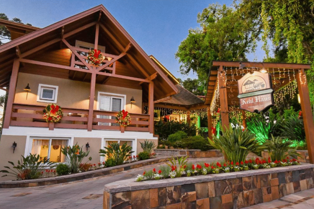 O Hotel Kehl Haus é uma ótima opção para casais que buscam hotéis para lua de mel em Gramado com clima acolhedor, áreas verdes e um ambiente tranquilo, sem abrir mão do conforto. Localizado em uma região mais sossegada da cidade, o hotel é ideal para quem deseja descansar e curtir momentos a dois em meio à natureza da Serra Gaúcha.