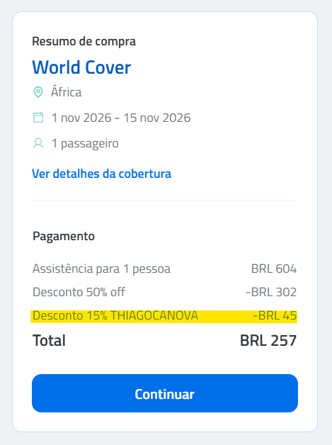 - Cupom de desconto no seguro viagem
